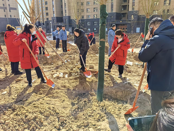 三月春风至 植树正当时 春风绿沃野,万物换新颜。 携手植新绿,扮靓满园春。 冬天的寒意还未褪尽, 春天带着绿色的气息 已向我们走来。 3.12“植树节”,博诚地产、博诚与豪生联合党支部、山水文园·幸福里、物业服务中心与山水西区的业主们一起,在小区内开展了“同植一颗绿树,共筑美丽家园”植树节活动。 一株新苗,一锹厚土,一瓢清水,树木植于土,小区生态理念植于心,为春天种一片绿色,为未来植一份希冀,共赴绿叶春光,耕耘美好梦想。 为了创造宜居、舒适的园区环境,给山水业主家人带来“绿意盎然”、“生机勃勃”的家园景色,博诚地产始终以园林美学践行者之姿,爱绿护绿、守护小区每一处美景。 山水文园小区历久弥新的秘密,藏在博诚地产日复一日对“绿”的敬意中,也藏在博诚物业打造园林式小区的决心里。 博诚地产、山水文园·幸福里、物业服务中心用源自内心的真挚为小区构筑365天的绿意美景,为业主们打造漫步小区内不经意的驻足停留与会心欢笑,时光不会辜负每一份专注,让我们与春天相约,把美好生活融进绿地春光里,绘出人与自然和谐共生的更新画卷。
