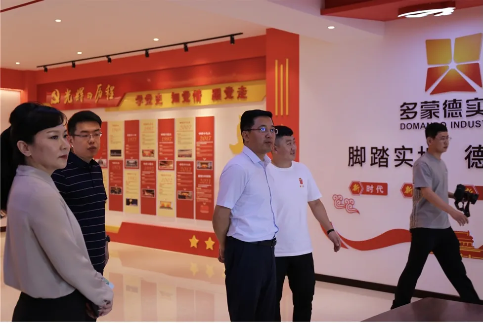 会后在参观多蒙德实业集团党员活动室时,敖满斌部长表示:要抓好党员队伍建设,不断探索民营企业党建工作新思路,加强党建工作助力企业健康发展。