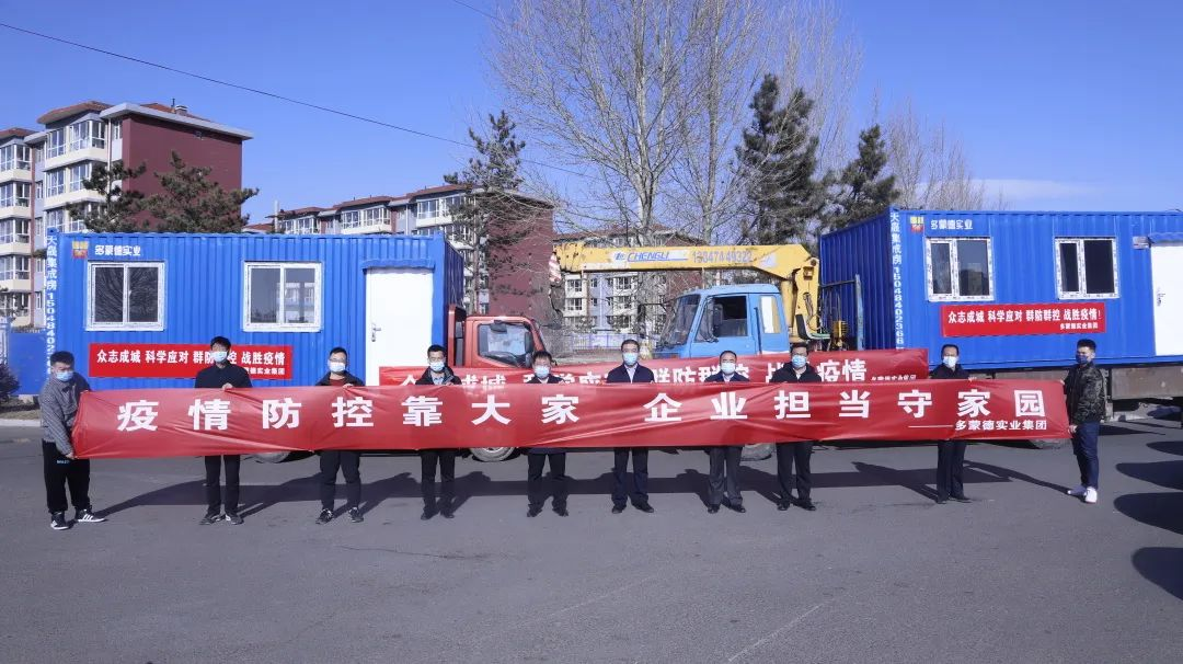 2月28日上午,多蒙德实业集团积极响应察右前旗旗委、旗政府、统战部和工商联的号召,为察右前旗捐赠45套集装箱房助力疫情防控,并在黄旗海镇新城家园小区东门口举行捐赠仪式。