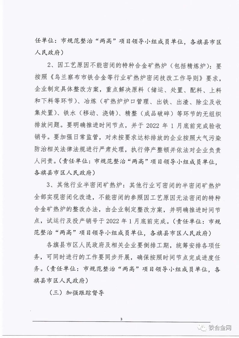 乌兰察布工信局印发“两高”行业企业三个专项整改实施方案