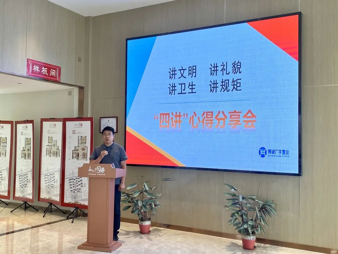 通过此次的分享活动,员工对于“四讲”活动以及活动中所蕴含的精神有了更加深刻的体会,在接下来的工作和生活当中,博诚地产每一位员工一定会把“四讲”精神内化于心,外化于行,知行合一,让“四讲”贯穿于工作当中,贯穿于日常生活当中。践行多蒙德实业集团“脚踏实地、德行天下”的企业文化内涵,争当“四讲”标兵,争做优秀员工!