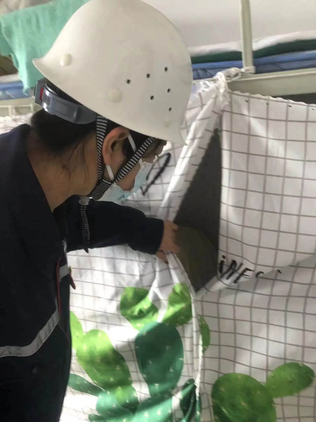 检查组一行深入职工宿舍、餐厅、办公楼等场所,现场检查了职工宿舍是否私自存放违禁用品或大功率用电设备。重点检查了各楼层内应急灯、灭火器材配备及有效性。检查餐厅、办公场所用电安全及消防安全通道是否占用、闭锁等。