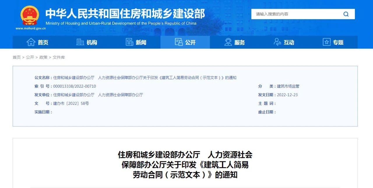 《建筑工人简易劳动合同(示范文本)》来源:住房和城乡建设部网站